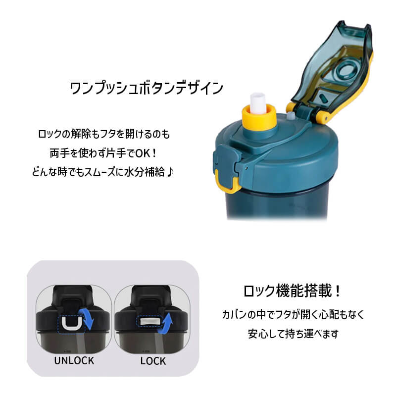 ワンプッシュで開く飲み口にはロック機能を搭載。